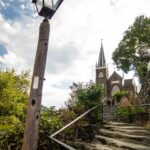 - Continue downhill and the A.T. passes the ethereal ruins of St. John’s Episcopal Church, destroyed by shelling during the Civil War. After going down a length of wood steps, the Trail comes into town on Church Street. Continue following the blazes down a series of stone staircases and be sure to stop to admire the old architecture and National Park exhibits along the way.