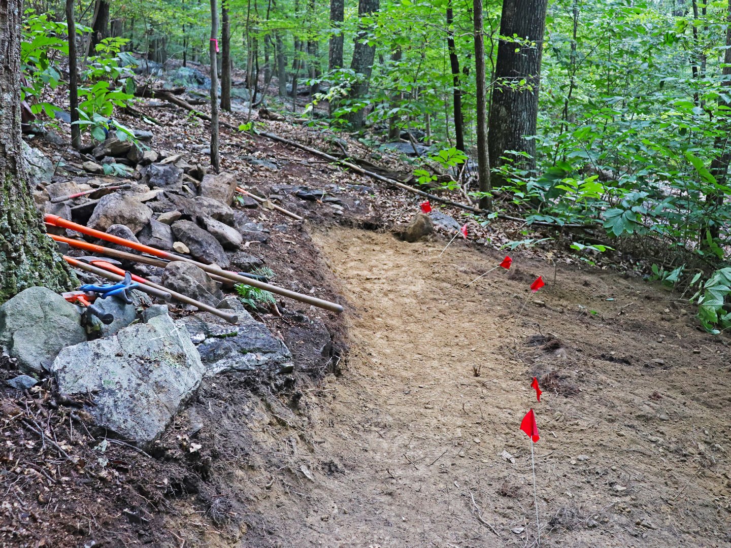 Completed in mid-September by volunteers with the Appalachian Mountain Club Connecticut Chapter, this relocation on Schaghticoke Mountain begins just south of the New York/Connecticut line and parallels the previous route of the A.T. to a point just north of the Schaghticoke Mountain Campsite. This relocation completely removes the trail from privately held lands and moves it to permanently-protected NPS lands.