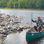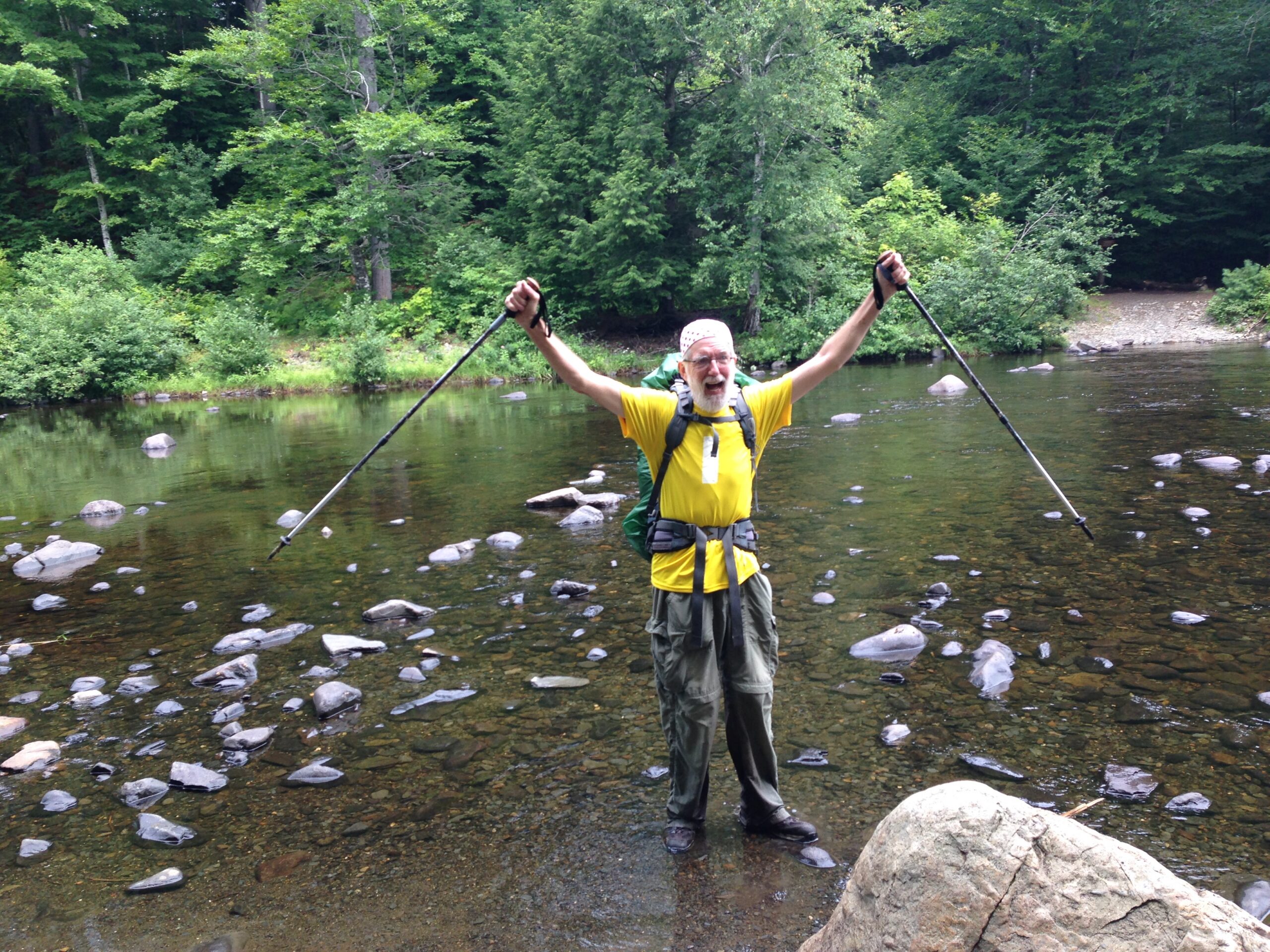 Adair Andrew after crossing the West Branch of the Pleasant River. Photo by Cliff Andrew.