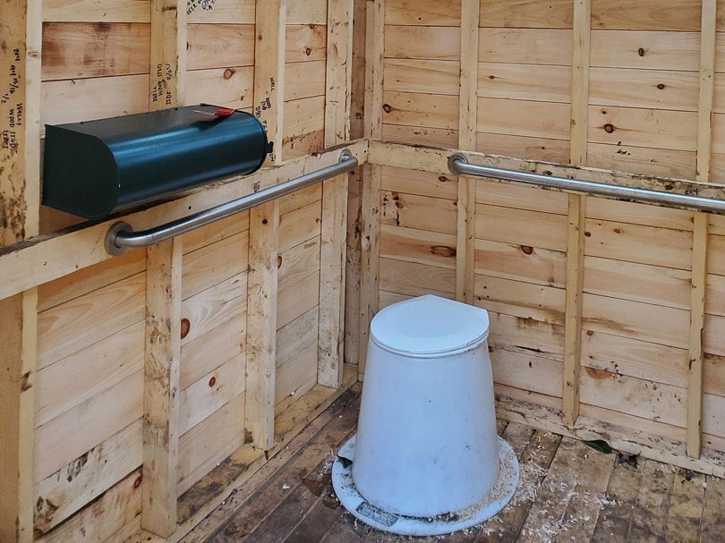 Composting privies have a store of bark mulch for hikers to throw in between uses to soak up the excess moisture, which can slow the composting process. For this reason, composting privies will often have signs asking you not to pee in them.