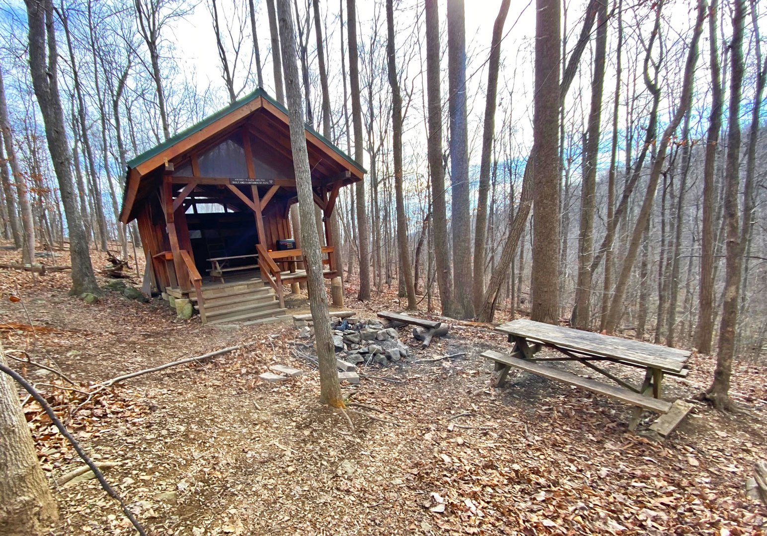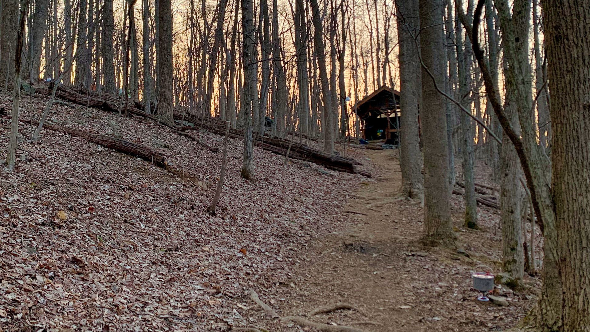 By noon, we were descending to our destination at Whiskey Hollow Shelter and campsite, where we ate our packed lunches. The sounds of the creek and wind blowing through the trees cheered our arrival and provided a backdrop for the afternoon. After filtering water, setting up our tents, dining, hanging bear bags, and fireside chats, it was already time to shimmy ourselves into our sleeping bags for the night.