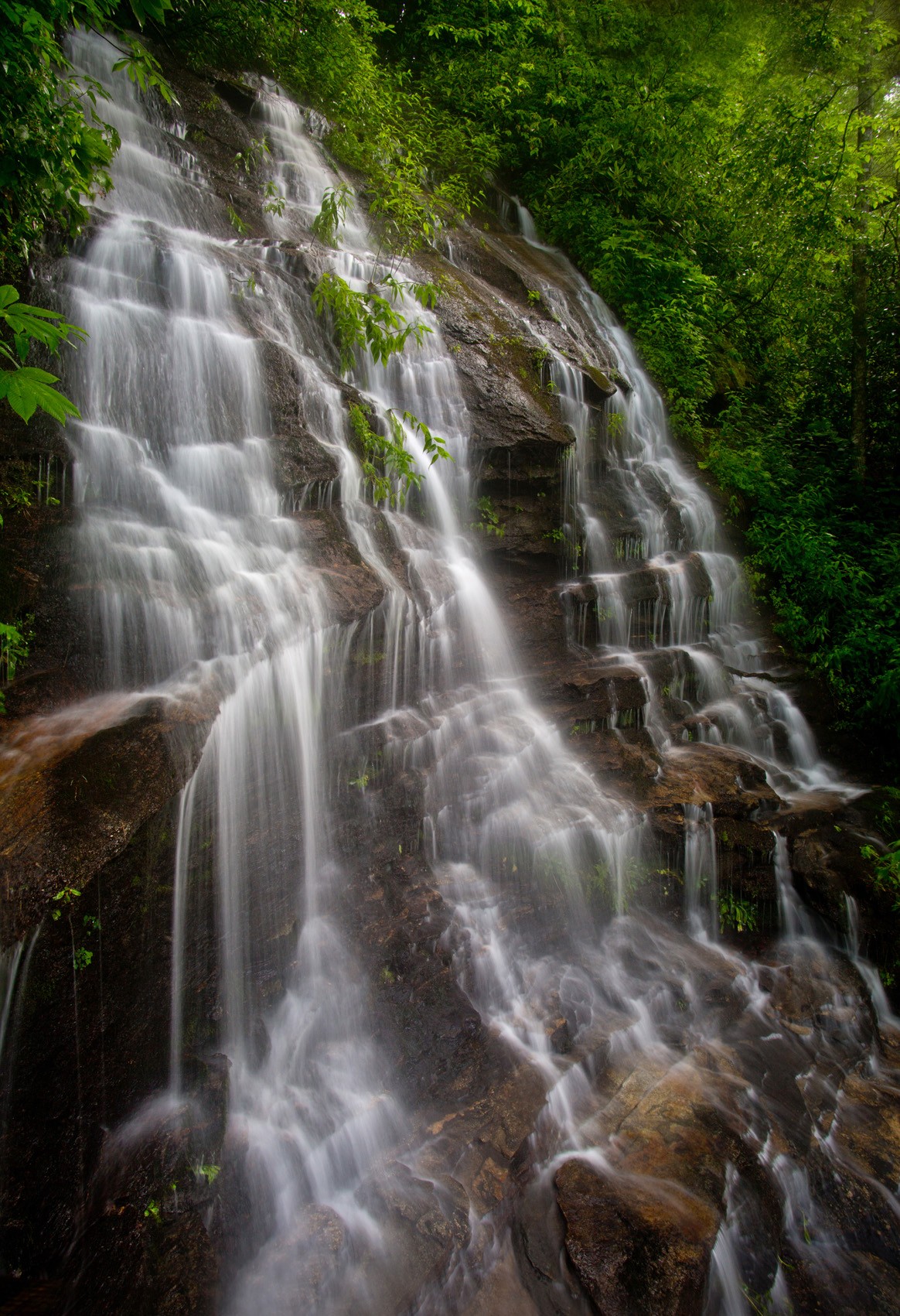 This 20-foot cascade is located just five minutes from downtown Clayton and is easily accessible. From Clayton, drive east on Warwoman Road for 2.8 miles and park on the left side of the road by the branch. Walk up the right side of the branch on the trail for about 200 yards to a bridge at base of falls.