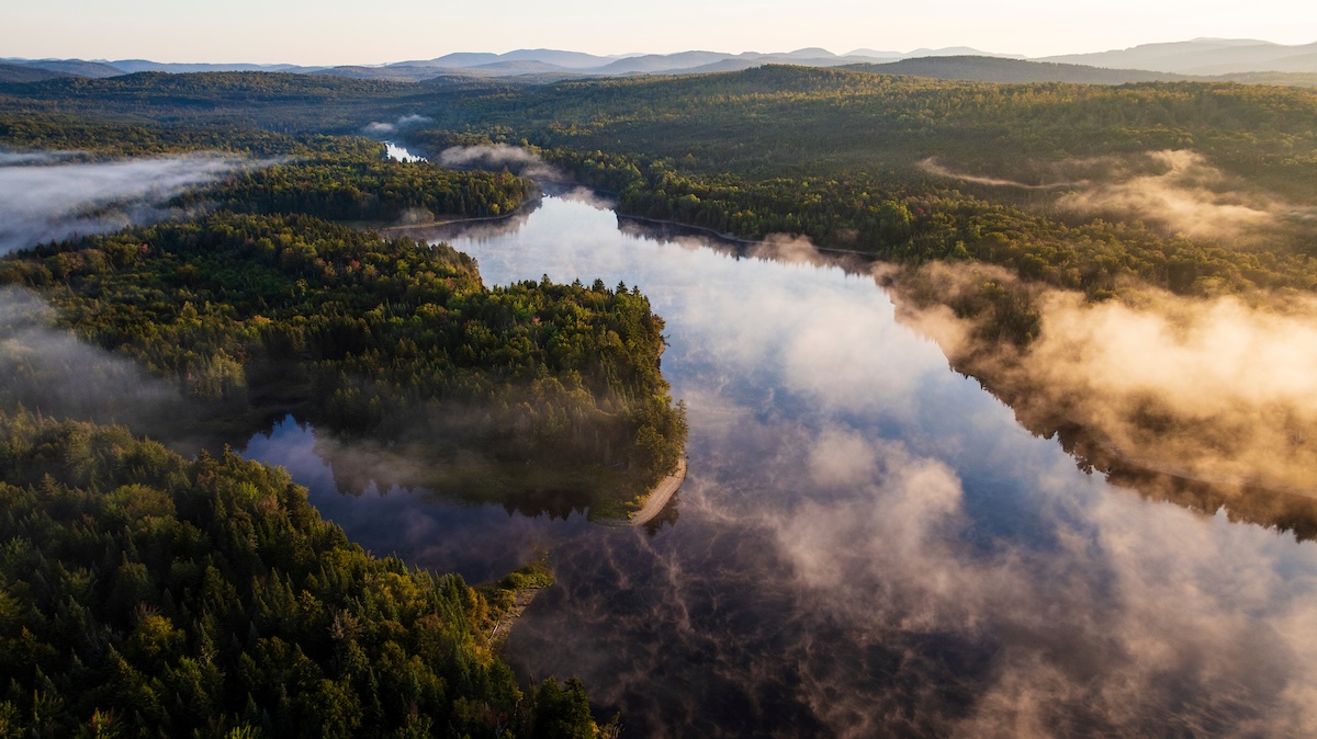 Morning fog on Aziscohos Lake in Maine’s northern forest. Photo by Jerry Monkman.