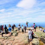 You turn your view to the vista and then to the remaining crowd of visitors on the summit and their trampling feet. The sun is high in the sky and the breeze is frequent and light, you look in your backpack and find it serendipitous that you have plenty of snacks and water remaining. You walk over to the next group of visitors; it is Saturday after all.