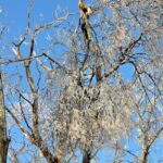 Mistletoe swellings, with exposed dead wood, on trunks of fir.