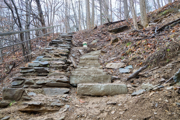 Starting this Friday, November 21, there will be a 0.5 mile detour for Appalachian Trail (A.T.) along Green Corner Road, near I-40. Volunteers with the Carolina Mountain Club, Georgia Appalachian Trail Club, and the Jolly Rovers will be replacing the masoned set of stone stairs that were damaged during the microburst storm in June, with funding from the ATC.